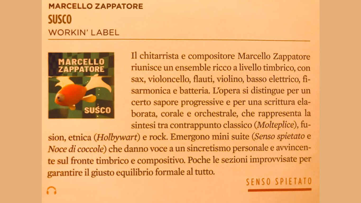Jazzit Magazine recently reviewed Marcello Zappatore’s new album entitled SUSCO.